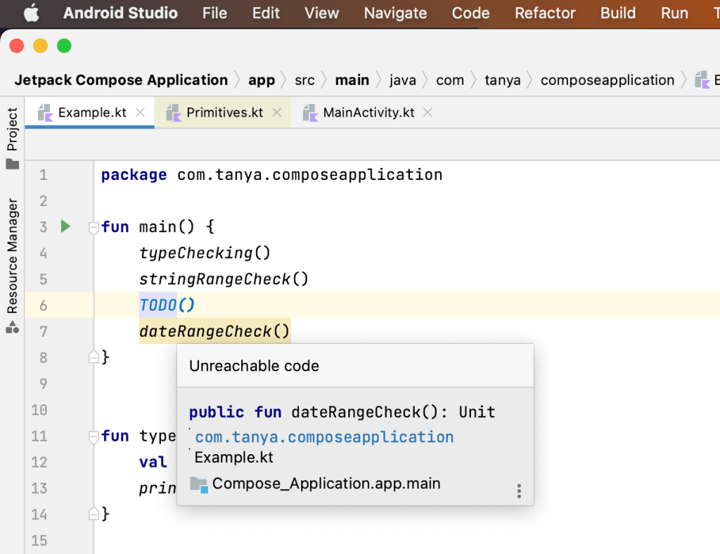 How is this possible if Kotlin code compiles to Java bytecode to run on the JVM? A look at the decompiled Java byte code for Example.kt should prove illuminating.
