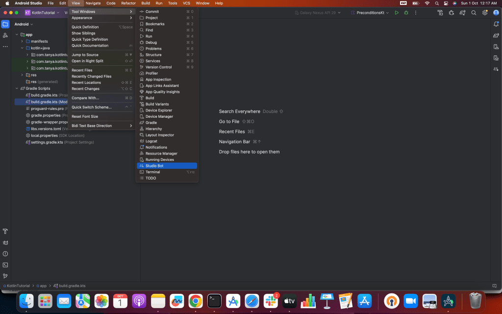 2. Open studio bot from View -> Tool Windows -> Studio Bot